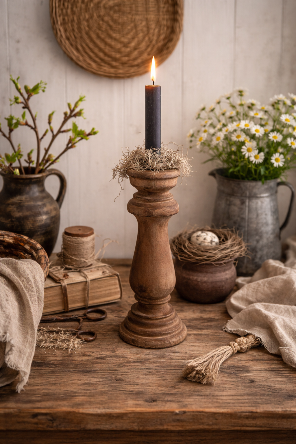 Landelijk & gezellig robuuste houten kaarsenkandelaar