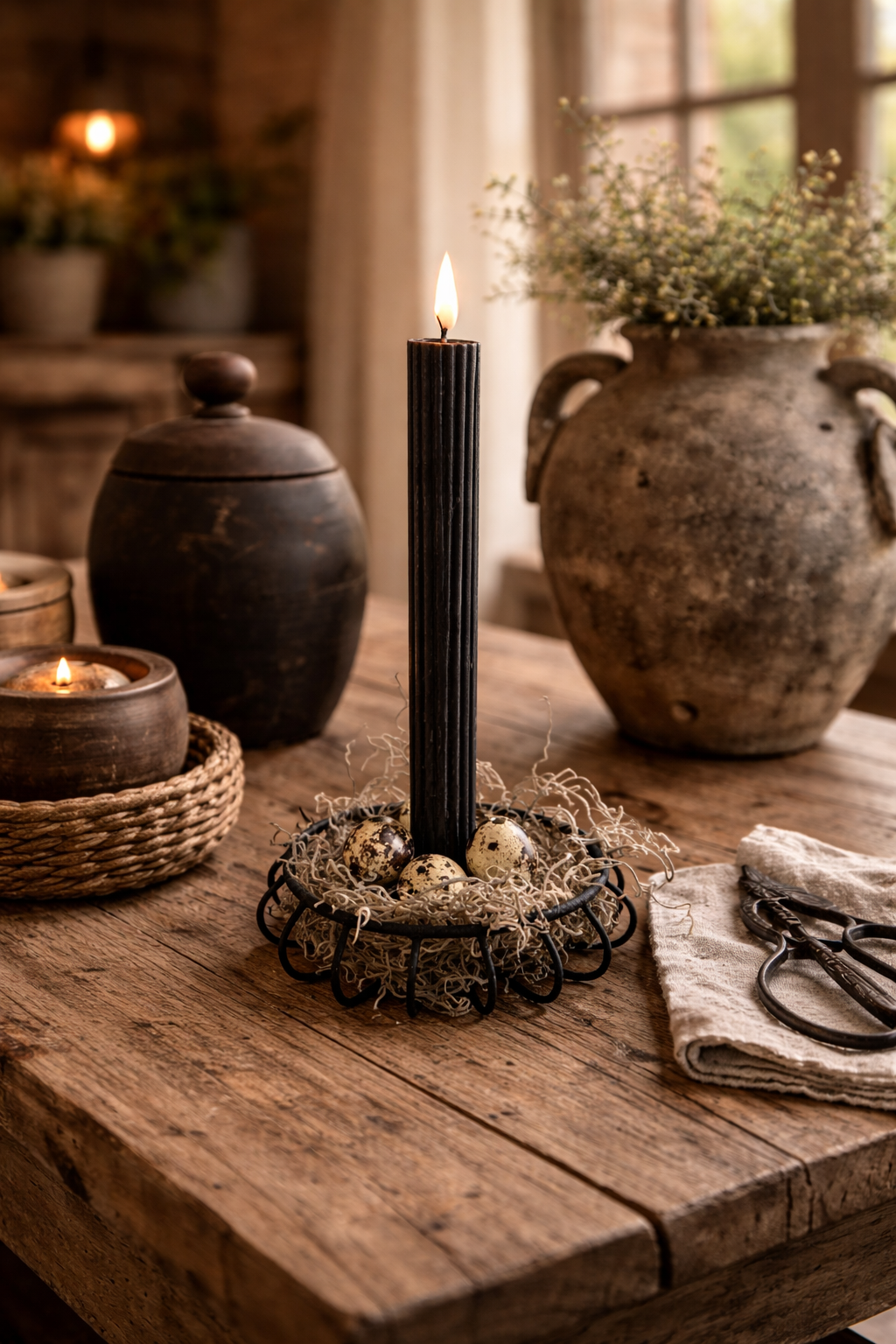 Deze kandelaar is niet alleen mooi op zichzelf, maar ook perfect om te combineren met verschillende accessoires. Denk aan meerdere kandelaars in diverse hoogtes, een dienblad, vazen of natuurlijke materialen voor een speels en sfeervol geheel. Zo creëer je eenvoudig een persoonlijke en gezellige setting.
