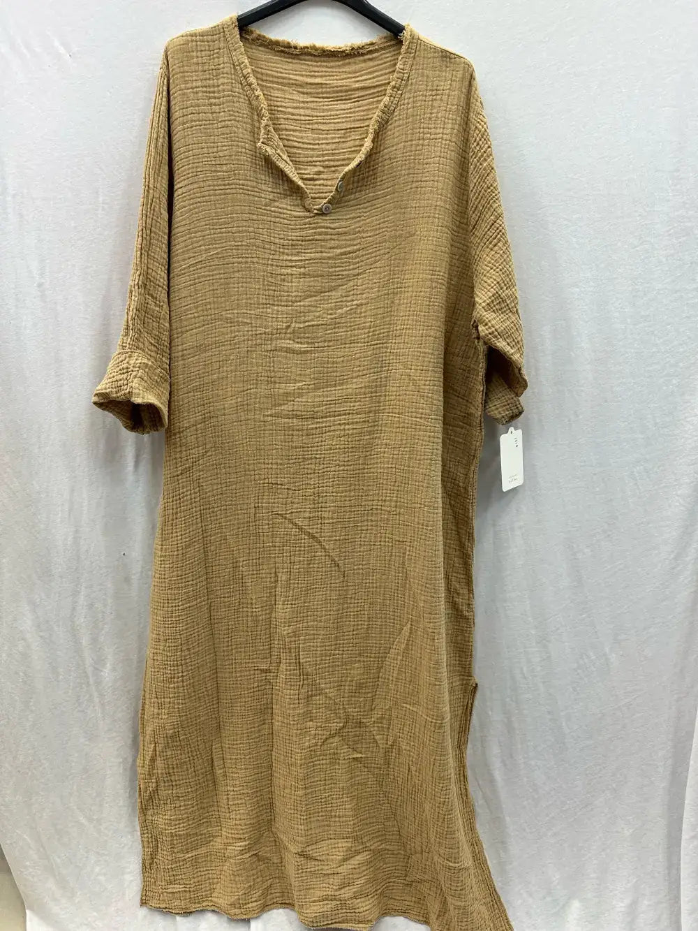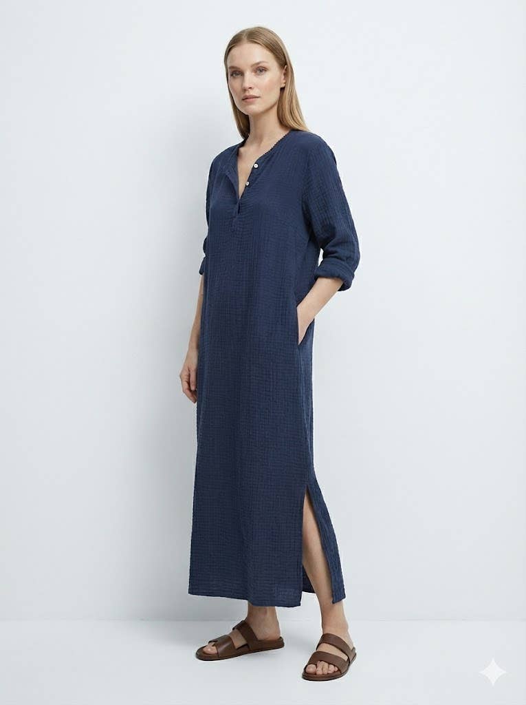 Deze boho Tunische kraagjurk is een perfecte mix van comfort, eenvoud en zomerse elegantie. Gemaakt van 100% katoenen gaas voelt de jurk heerlijk licht en ademend aan – ideaal voor warme dagen, strandwandelingen of ontspannen zomermomenten.