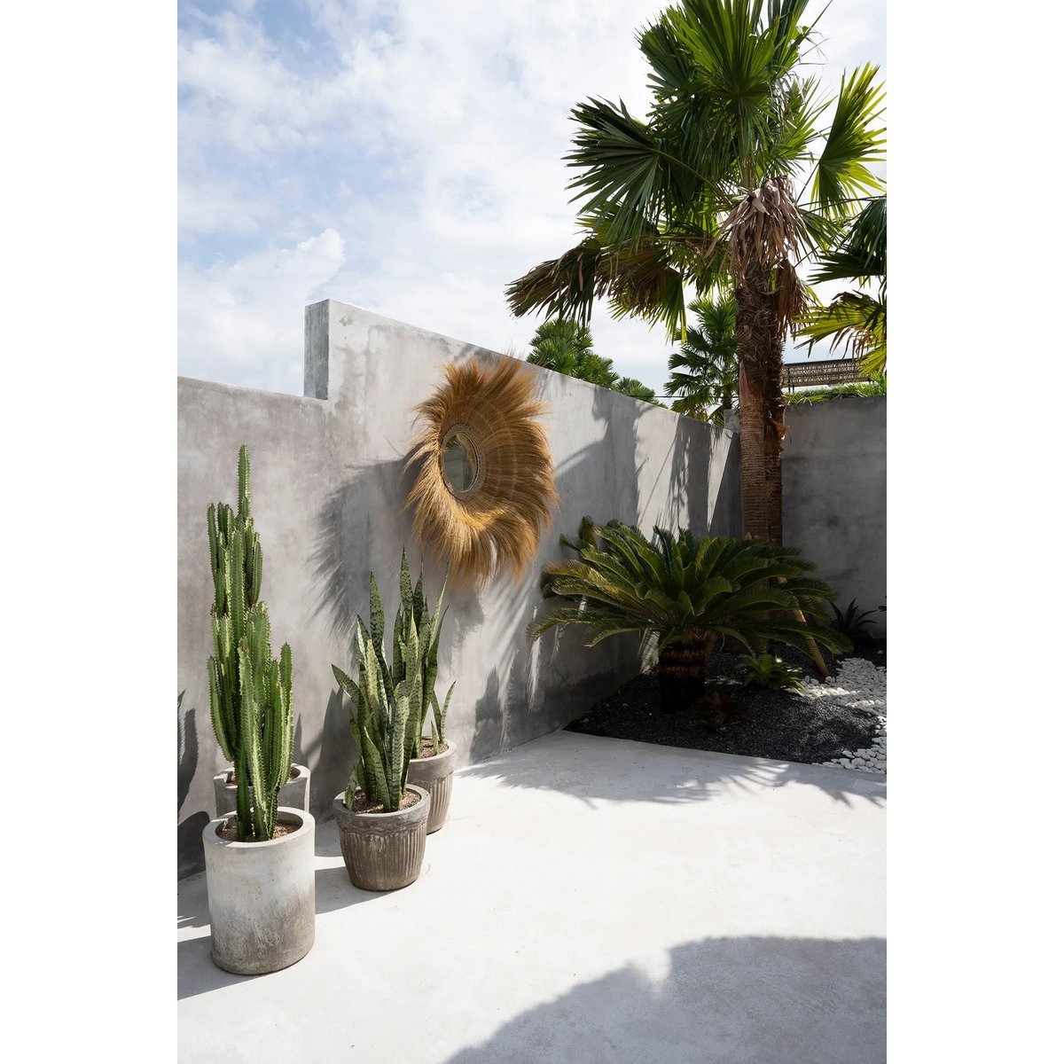 Deze prachtige spiegel is een fantastische manier om een beetje drama toe te voegen aan uw huis, kantoor of zelfs overdekte buitenruimte. In plaats van plat heeft deze spiegel het glas "verzonken", waardoor er veel diepte aan het ontwerp wordt toegevoegd. Met de hand gemaakt van gedroogd gras, de prachtige natuurlijke tint van dit stuk maakt het tot een unieke en tijdloze schat.
