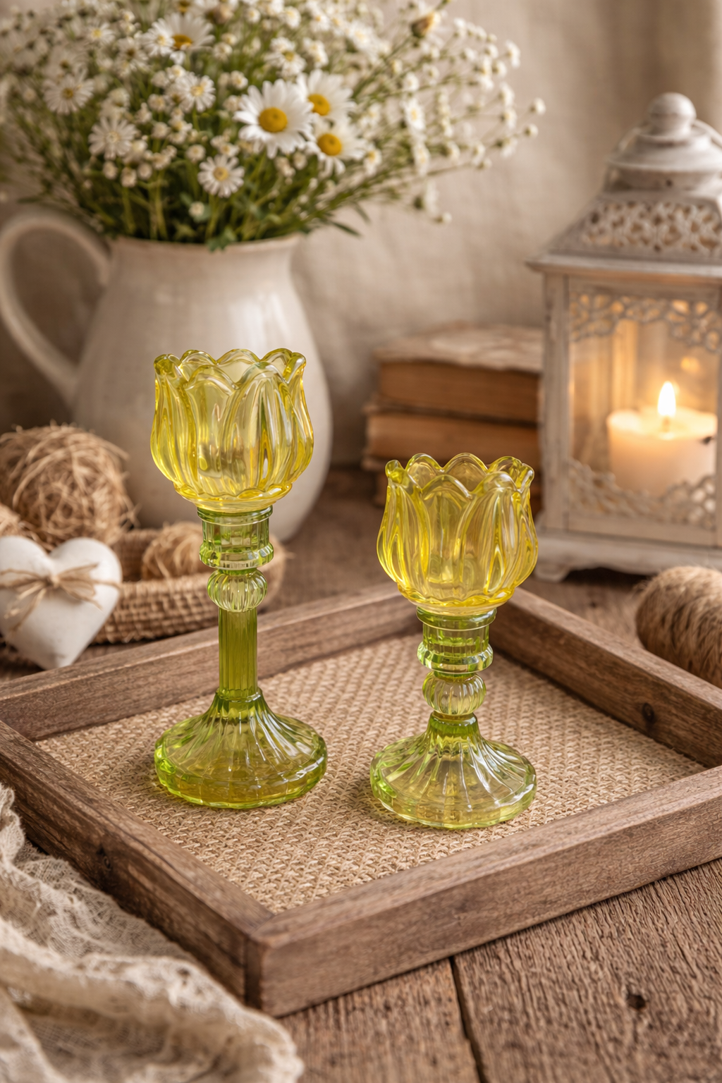 Gekleurde set glazen waxinelichthouders geel