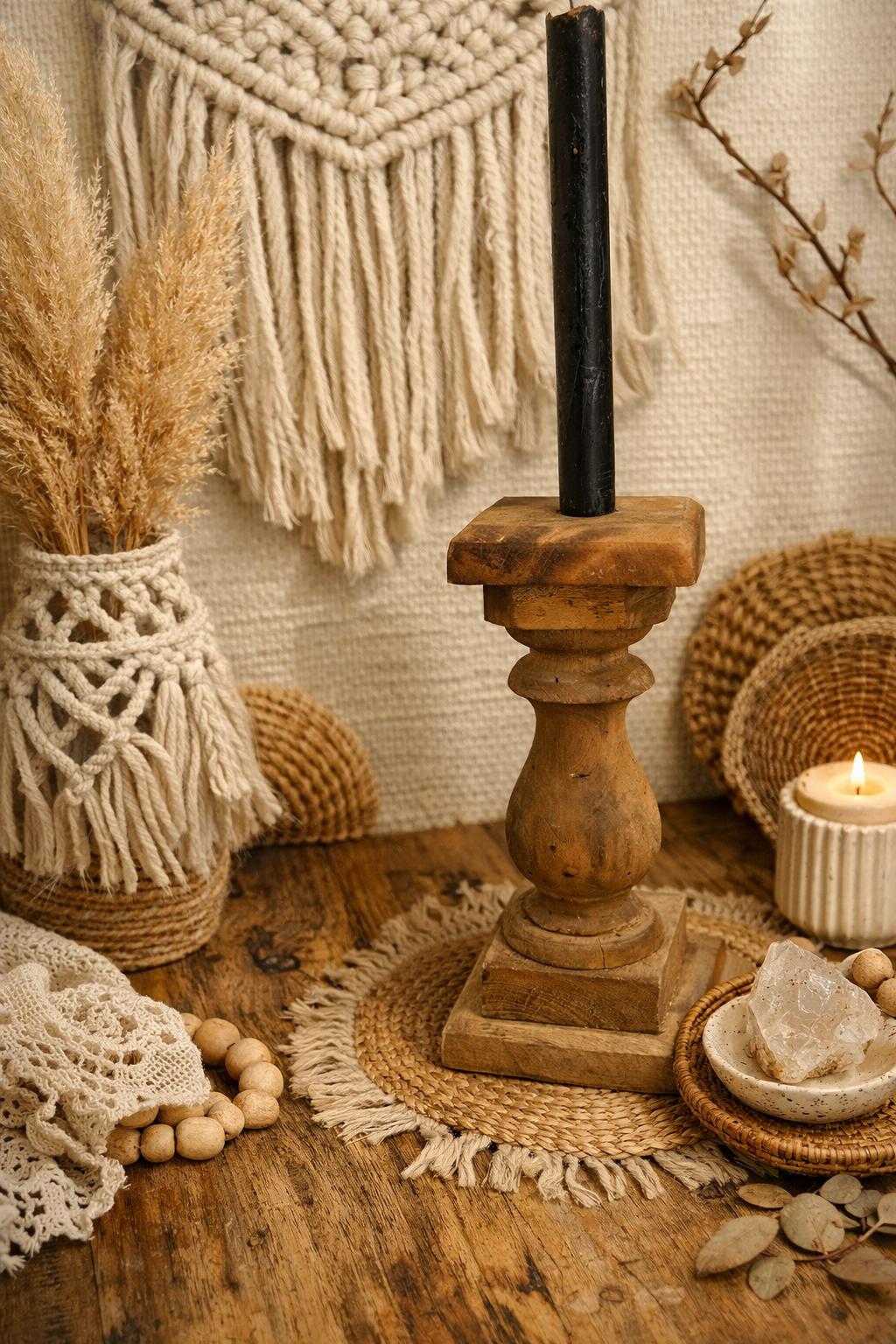 De houtstructuur en subtiele afwerking maken elke kandelaar uniek. Dankzij het tijdloze ontwerp past hij perfect in een landelijk, Scandinavisch, modern of industrieel interieur.