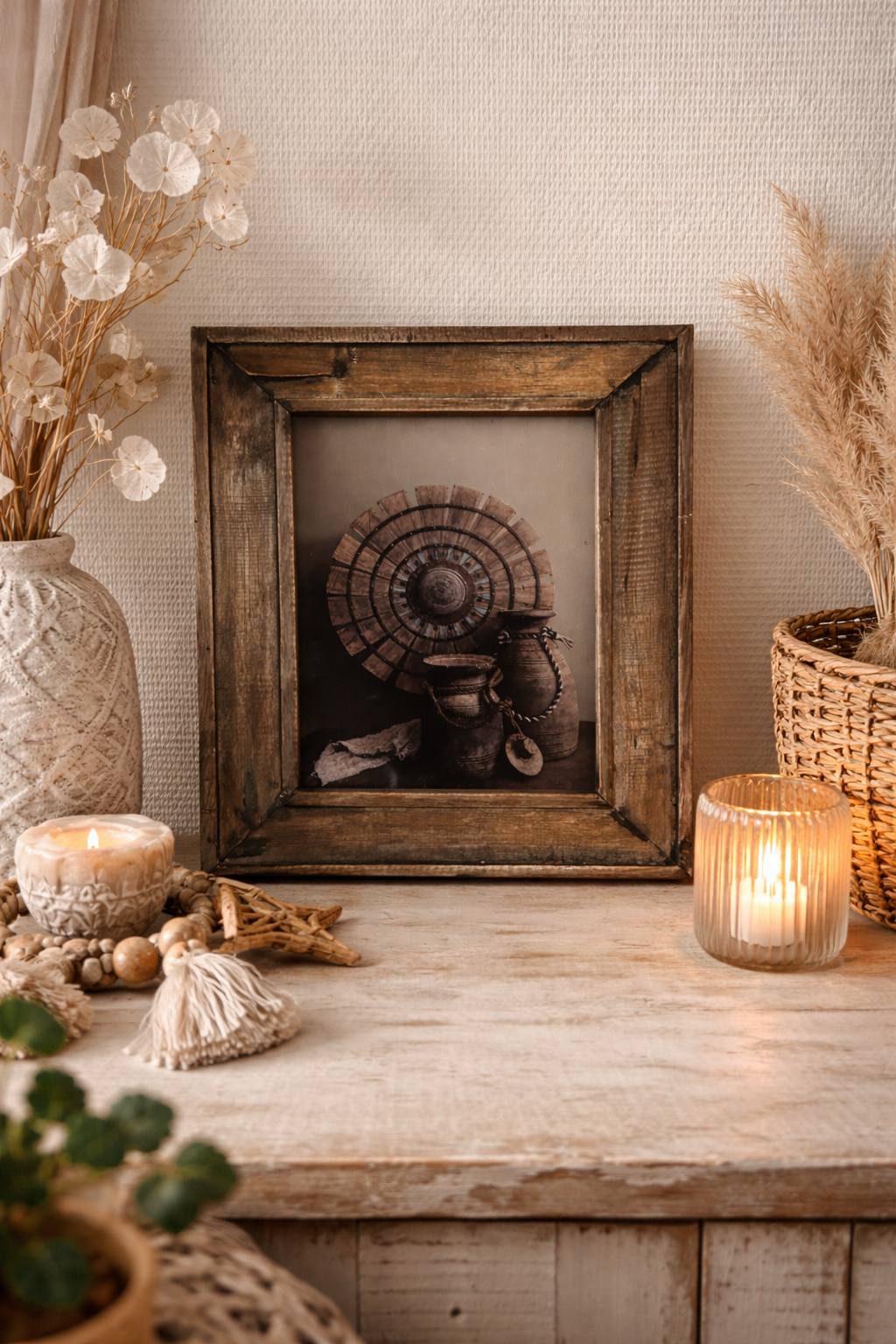 Houten lijst met landelijk inheems plaatje