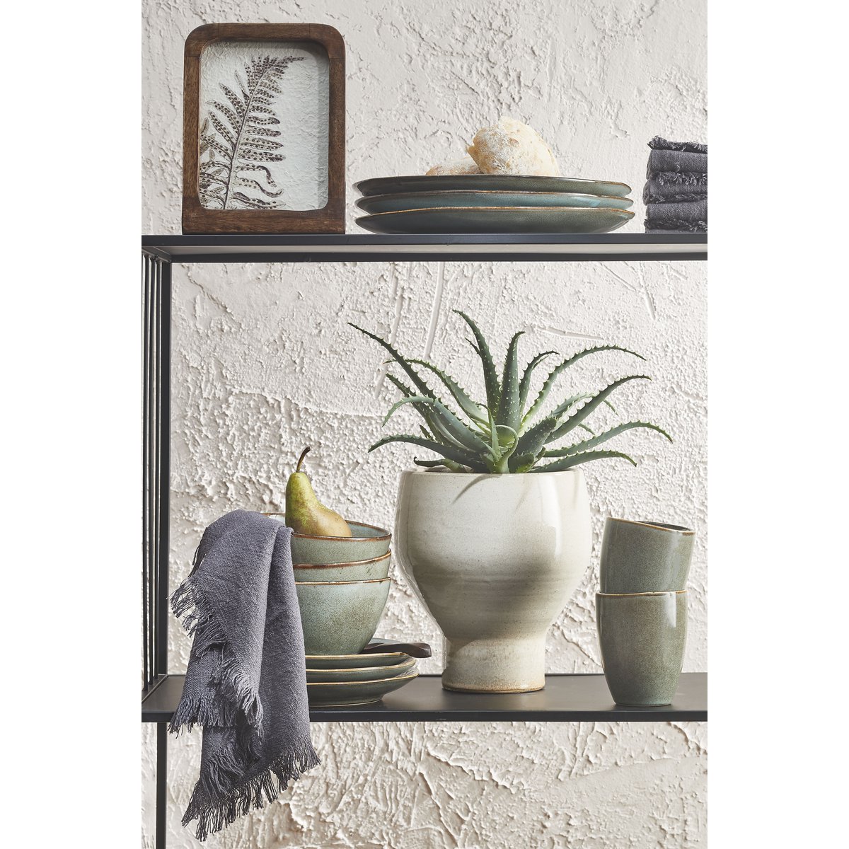 Rustiek en robuust, zo kan het Tabo servies van Mica Decorations het beste worden omschreven. Geen wit porselein met saaie volmaakte lijnen, maar handgemaakte, keramieken producten in neutrale tinten. Elk met een eigen, authentieke look die past bij puur genieten. Waarom zou je dan voor één item gaan als je ook gelijk een hele set kan nemen? Deze Tabo serviesset bestaat uit 16 delen en is geschikt voor 4 personen. De set telt 4 mokken van H10,5 x Ø8 cm, 4 schaaltjes van H8 x Ø15 cm, 4 kleine borden van Ø20,5 cm en 4 dinerborden van Ø26 cm. Het servies past door de mooie, groene kleur met bruine accenten in elk interieur! Daarnaast kan elk item zowel in de vaatwasser als in de magnetron worden gezet en is het servies hittebestendig tot 180°C.